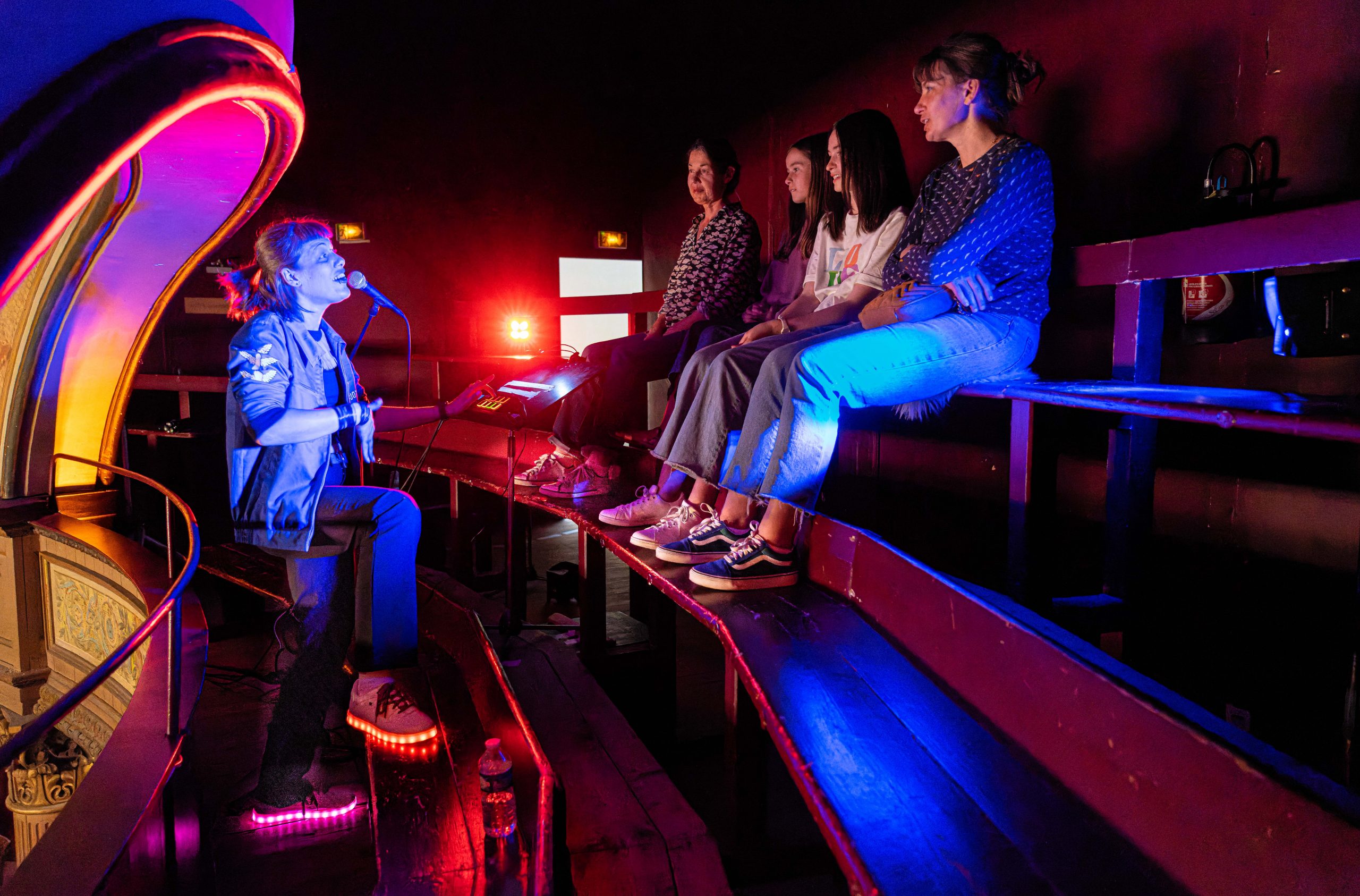 Performance jeune et tout public, ludique et participative, Le Family Footbar repose sur l’imaginaire des kermesses populaires. Autour de la buvette, une multitude de stands attendent de pied ferme les petons les plus timides, loufoques et déchainés. On déambule à sa guise, cavale, fait le pied de grue, joue, gigote, se fait tirer le portrait…